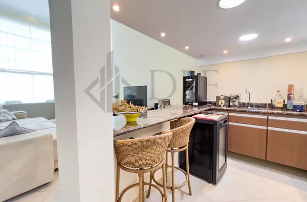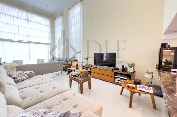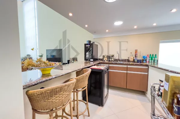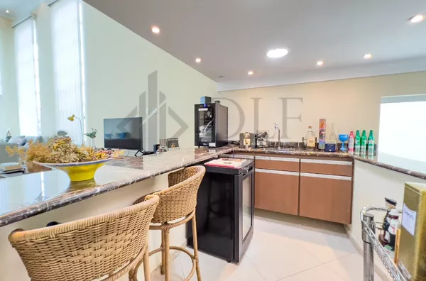 Há 3 salas integradas, amplas e com pé direito de 6 m, que proporcionam um agradável ambiente completado por um confortável e amplo terraço. Há um lavabo. Possui um bar, espaçosa sala de jantar com terraço de ótimas dimensões que leva à área de lazer.
