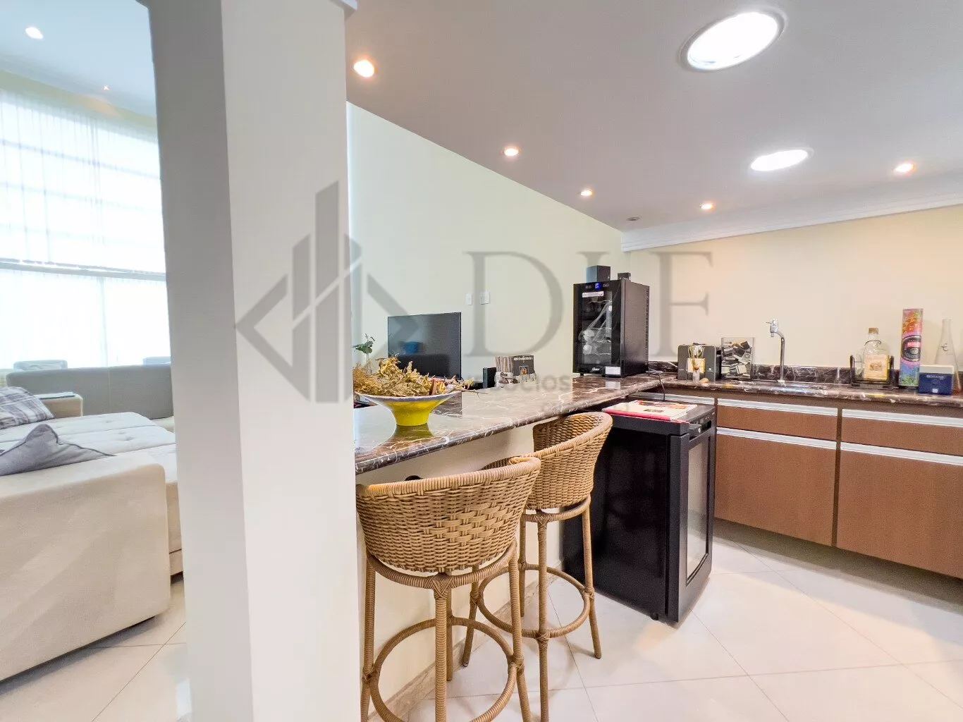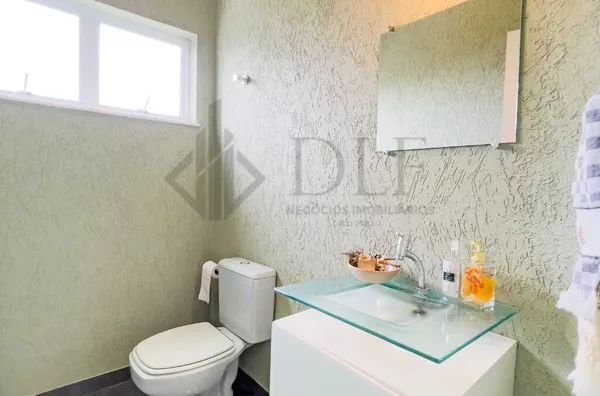 Nesse ambiente, de convívio, há acesso a um deck panorâmico na parte superior, para solarium bem como para festas. Esta área tem entrada independente do convívio familiar que proporciona praticidade. No andar superior da casa há 3 quartos, sendo uma suite master, e dois banherios para os demais, todos eles com armários de qualidade superior. Todos os quartos possuem porta-janela que dão para um terraço panorâmico. Há outra suite no térreo com terraço.