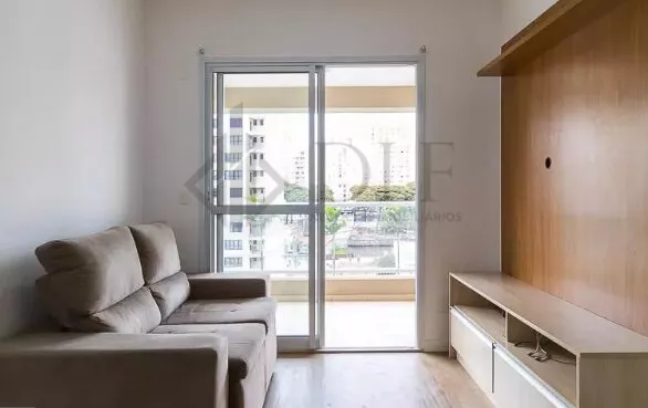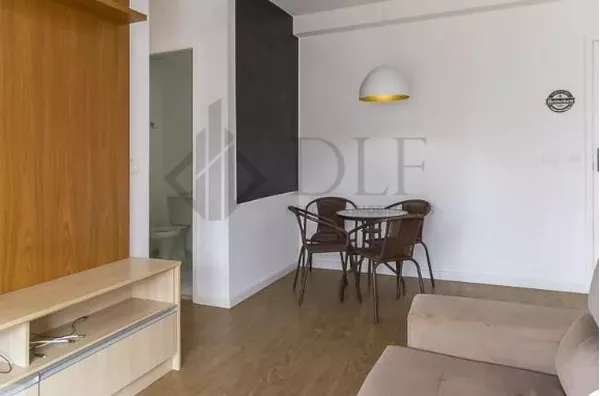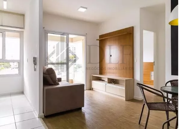 Apartamento amplo e moderno com 1 quarto e 1 banheiro, sala, cozinha e 1 garagem coberta.