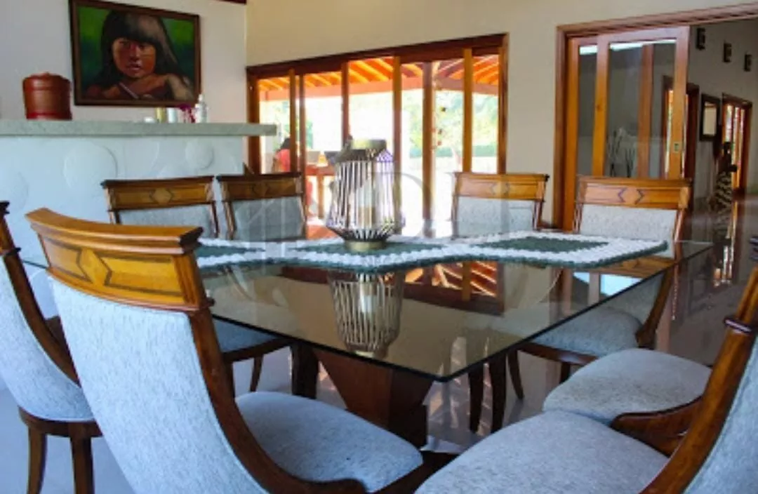 Possui 5 dormitórios sendo 3 suítes, uma ampla cozinha planejada, sala de estar com pé direito de 6 metros, sala de tv, escritório, 7 banheiros, despensa, àrea de serviço, canil planejado, Casa de maquinas e deposito geral para ferramentas e maquinas, excelente pomar de frutas com média de 60 pés diversos + horta tudo em produção o ano todo.