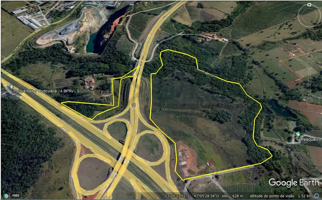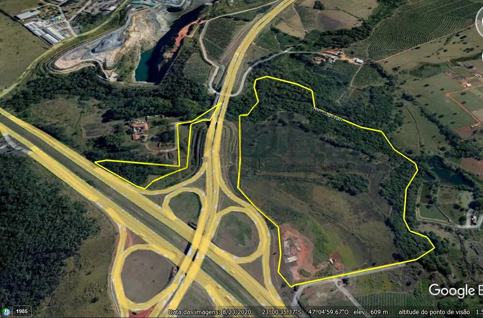 Área de partição da Fazenda Capivari na Rodovia dos Bandeirantes, km 84, com Anel Viário Magalhães Teixiera. Para visualizáção use o Google Earth.