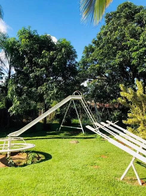Total de 7 quartos, churrasqueira, piscina, campo de futebol, parquinho, portão eletrônico, poço artesiano, água encanada, totalmente murada e gramada, pomar e horta formados.