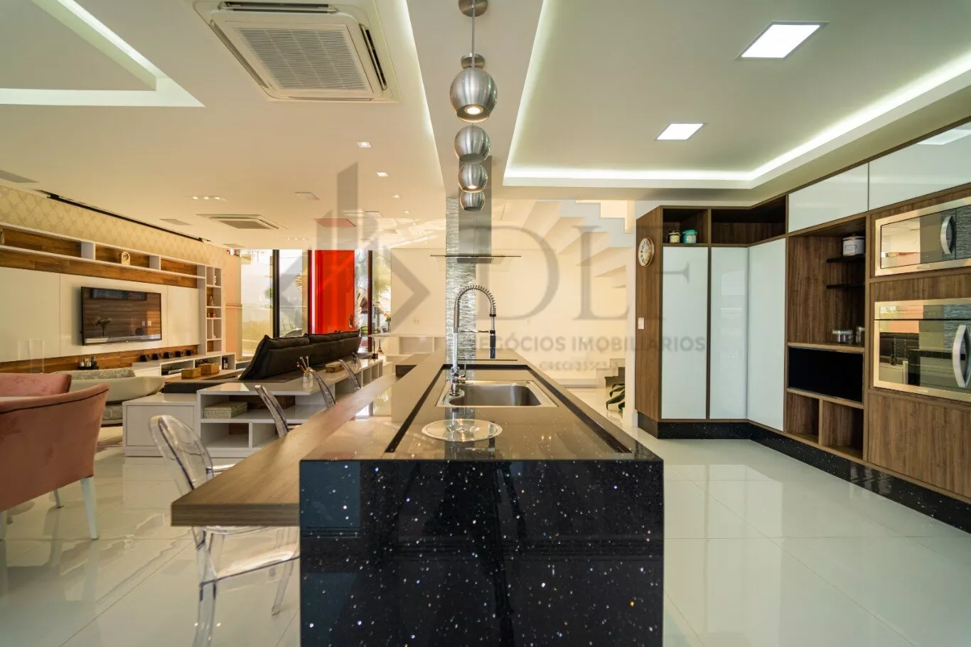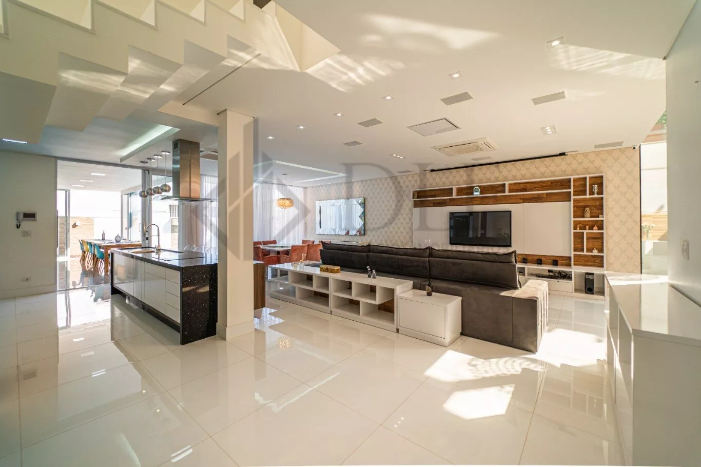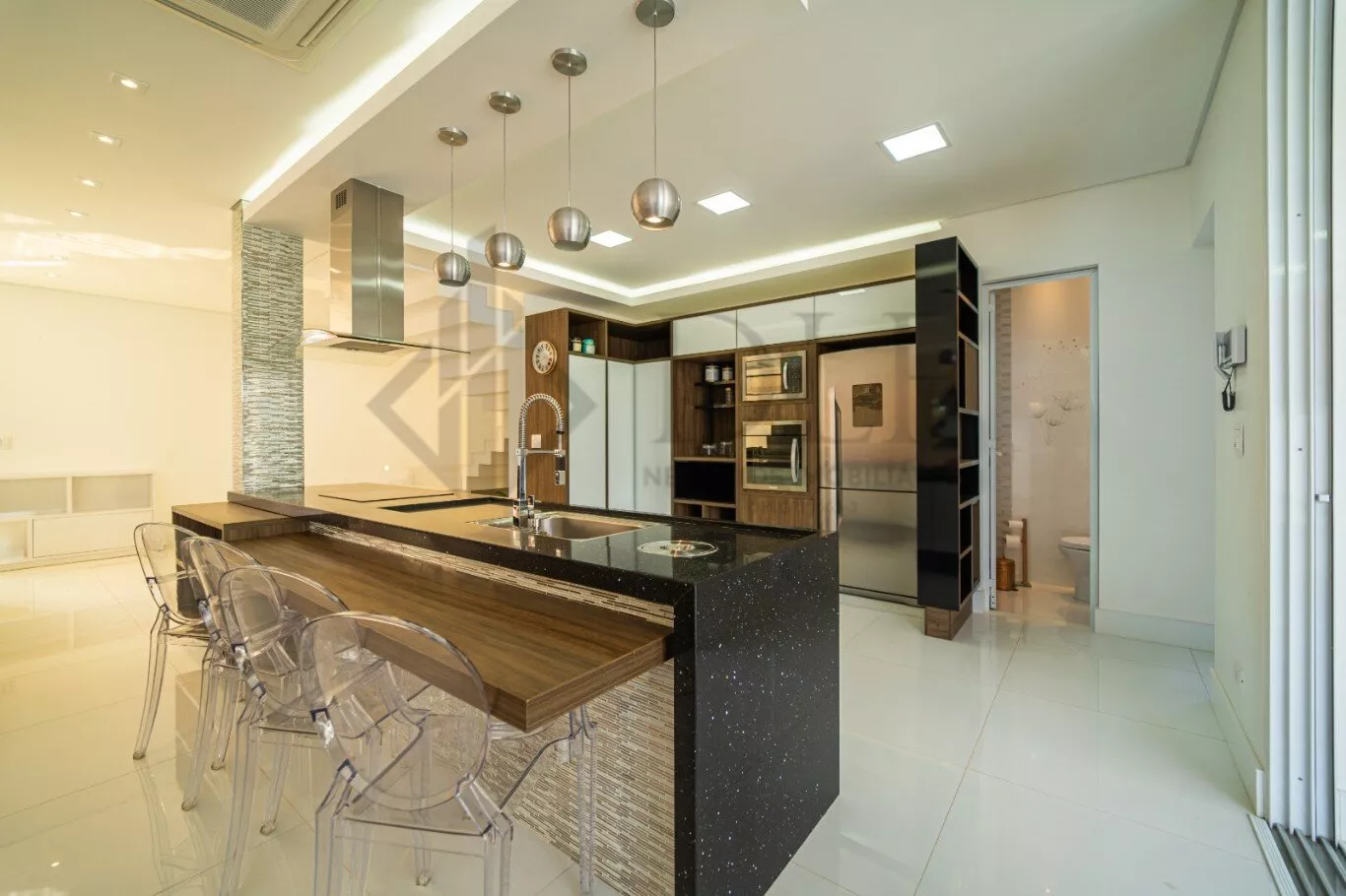 No piso térreo, uma espaçosa sala e copa conjugada, cozinha em conceito americano, lavabo e área de serviço.