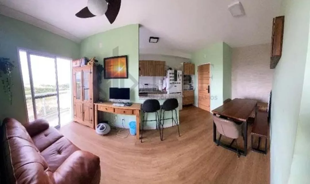 Apartamento com 2 dormitórios, lavanderia, banheiro (com Box de vidro), sala de estar e jantar, cozinha com móveis planejados + cooktop. Ventiladores de teto em todos os ambientes e piso vinílico.
