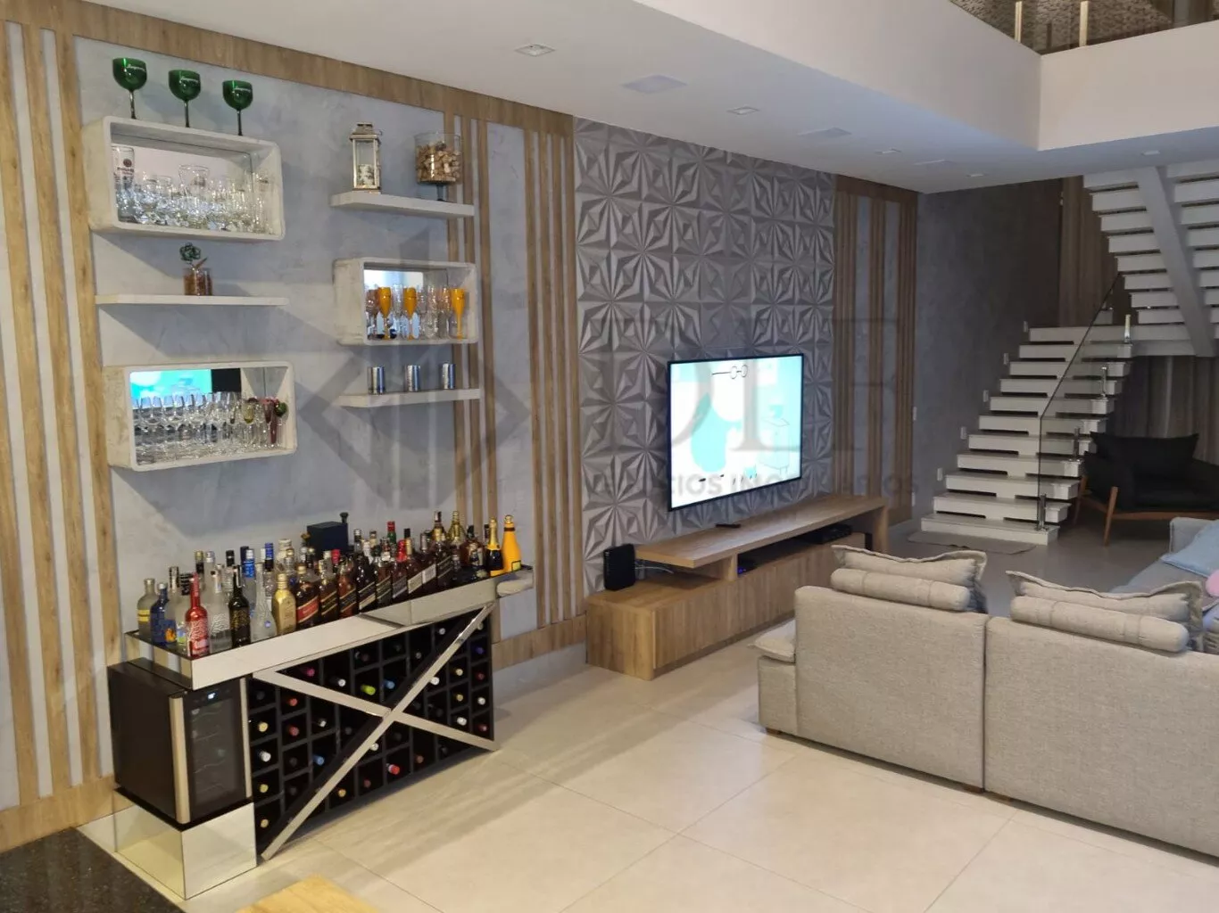 Sala de TV andar superior com uma linda vista.