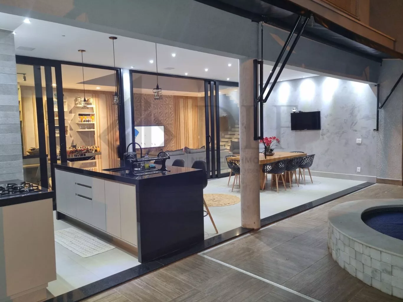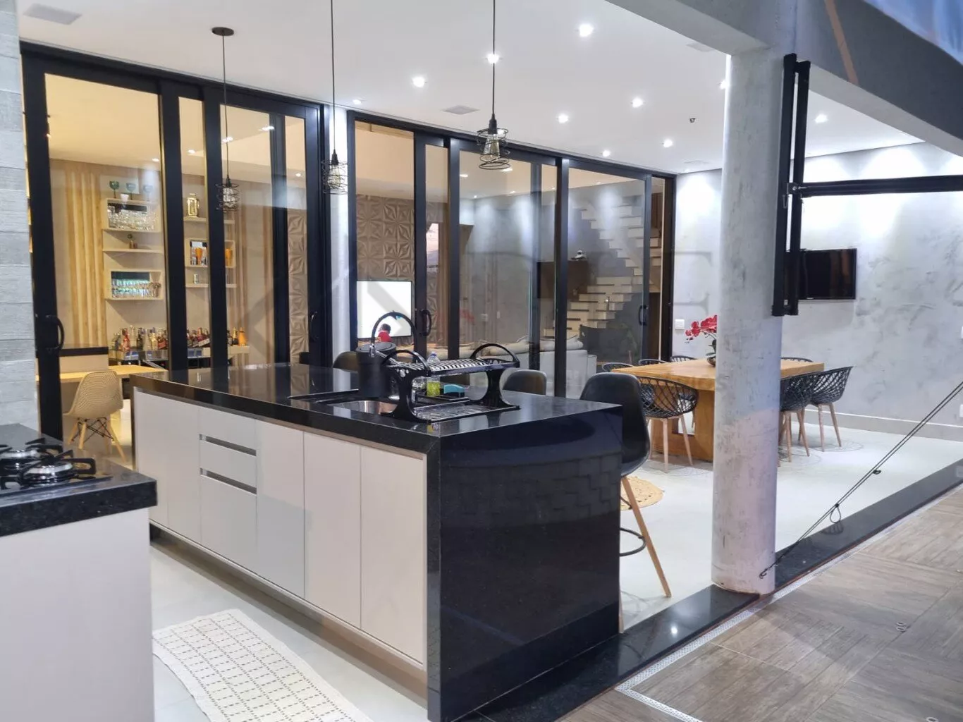 Ampla área gourmet, com ilha espaçosa . churrasqueira e cooktop 04 bocas.